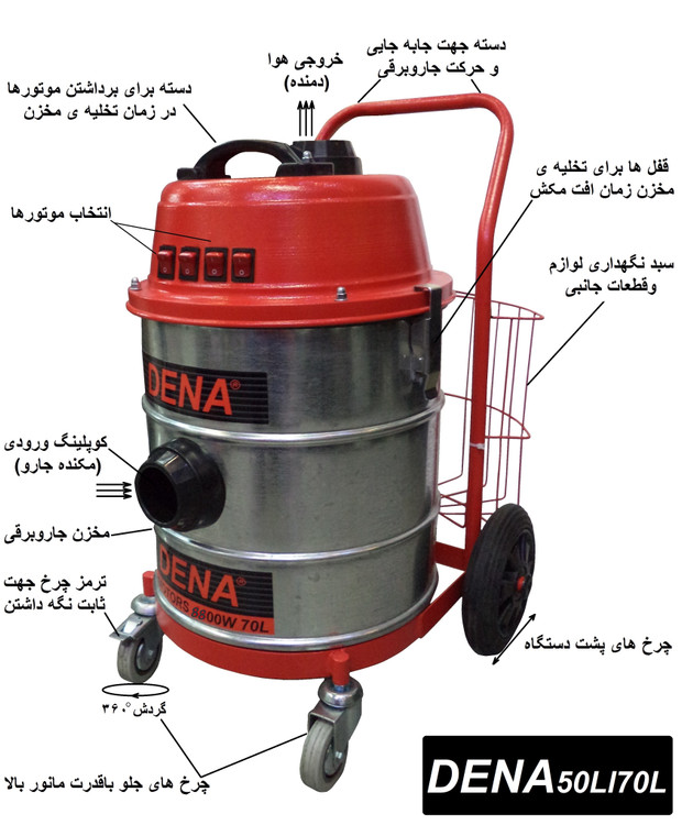 جاروبرقی صنعتی ۳ موتوره دنا مدل 6600W مکنده و دمنده ، آب و خاک
