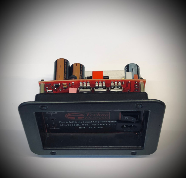 Complete audio system with frame and panel and tone and control circuit (bass and treble) and power supply up to 250 watts switching