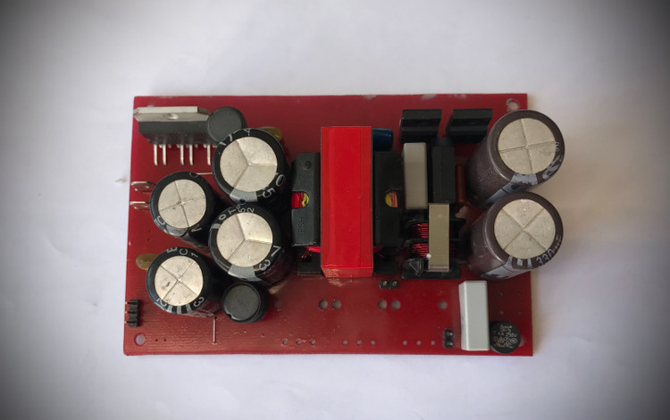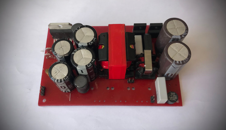 Complete amplifier module and board for subwoofer with 100 W RMS power and output impedance and 4 Ohm speaker and with 220 V DC voltage without the need for a bridge, adapter, rectifier, capacitor, etc.