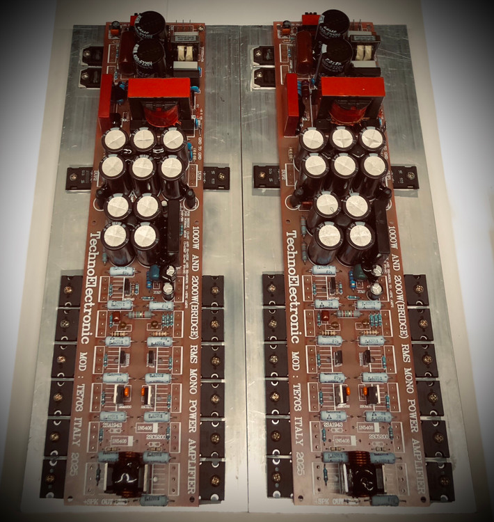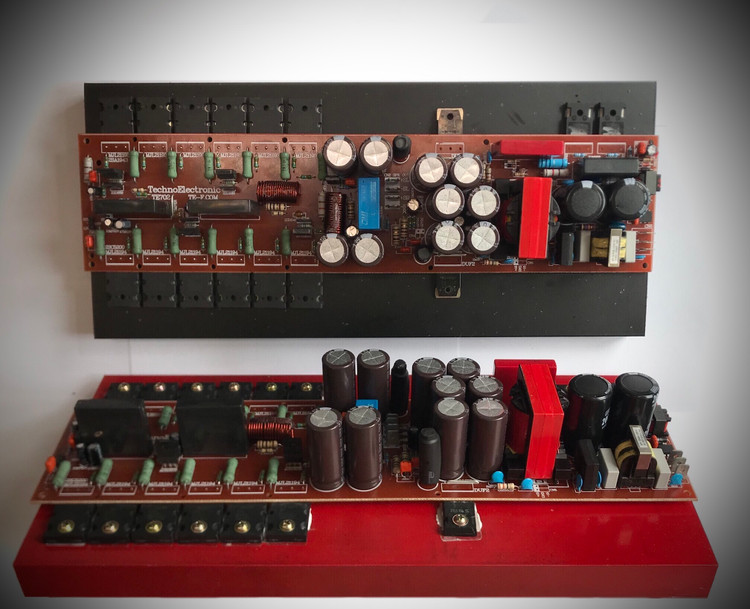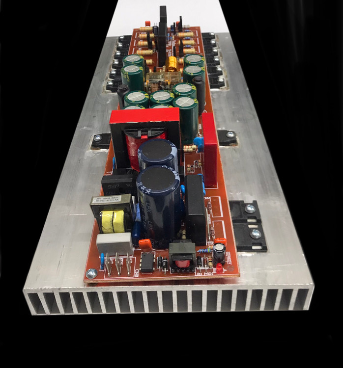 مدار کامل آمپلی فایر استریو ۱۰۰۰ وات rms استریو ( 500W + 500W ) با منبع تغذیه سویچینگ و برق مستقیم شهر ۲۲۰ ولت بدون نیاز به نراتس و رکتی فایر به صورت پک کامل دارای محافظ برق ، هیتسینگ مدار کامل و مونتاژ شده